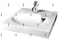 изготовлена из литого мрамора, размеры 600 х 600 х 90 мм.